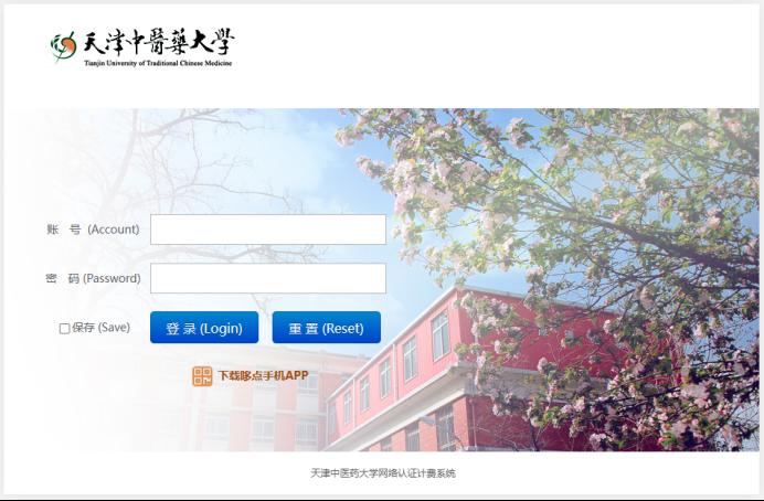 2、连上校园网无线信号(不需要登录认证),使用浏览器打开net.tjutcm.edu.cn,输入自己的上网账号密码点击登录。